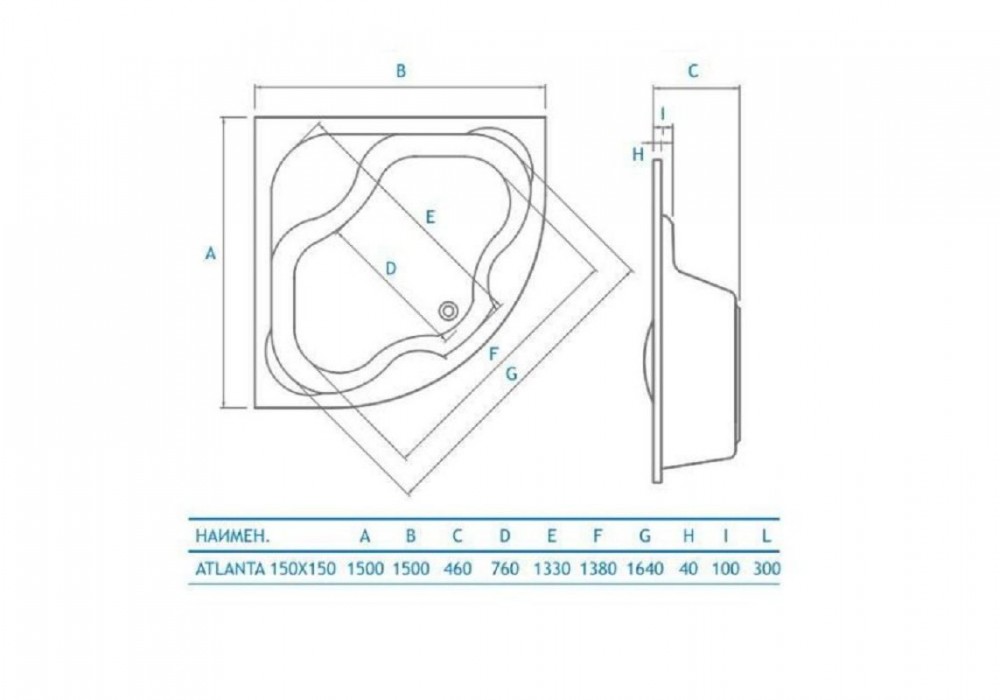 Якщо Ви вибираєте кутову ванну,яка дозволить розслабитися після важкого трудового дня, завдяки великому обсягу, а також буде зручна і проста в догляді, зверніть увагу на модель Koller Pool Atlanta 150x150. Вона виготовлена з якісно акрилу LUCITE, який є не тільки екологічно чистим, а й вельми міцним, і надійним, що забезпечує конструкції довгий термін служби. Габарити ванни складають 1500x1500 мм, при глибині 445 мм, тому вона без проблем дозволяє прийняти ванну відразу двом. Модель має плавні вигини і лінії, а також передбачає наявність полички для приладдя, яка при необхідності стане зручним сидінням.