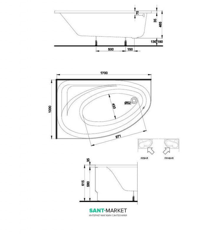 Ванна гідромасажна акрилова кутова Kolo Promise 170х100 ліва