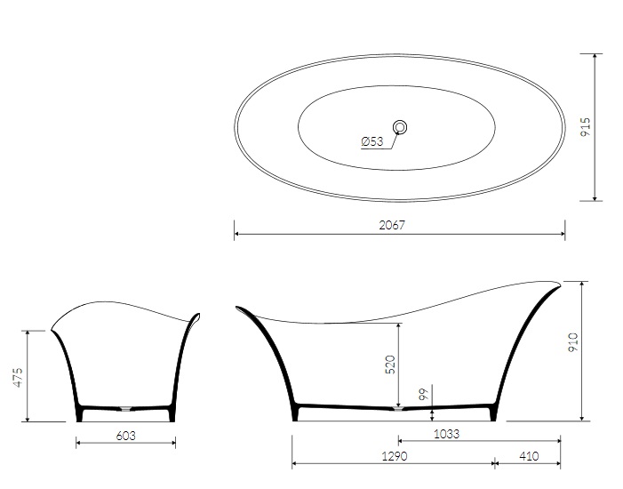 Ванна зі штучного каменю Marmorin Alice ІІ 206,7х91,5 см окремо варта білий