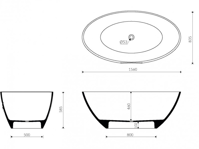 Ванна з каменю Marmorin Selia 156х83,5 см см окремостояча білий 719 156 020 xx x