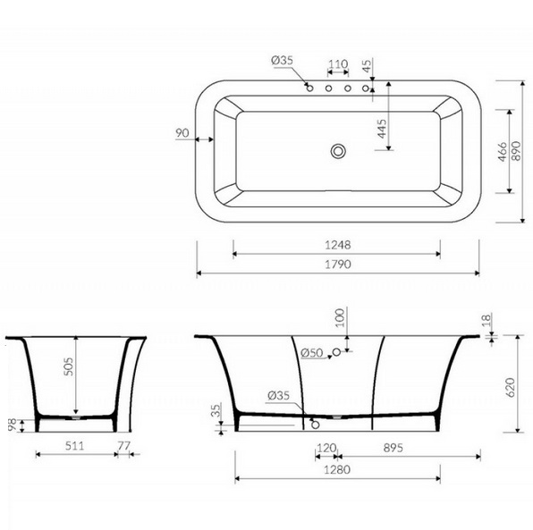 Ванна з каменю armorin Tytan 179x89 см окремостояча з кришкою білий 668 180 0xx xx x