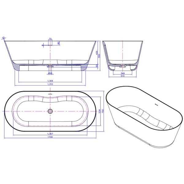 Отдельностоящая овальна ванна IStone Ollie 1700x750 WD65160 Австралія при стандартних, здавалося б, розмірах, надає набагато більше комфорту і можливостей розслабитися душею і тілом, завдяки своїй елегантній овальної форми, виконаної з дотриманням вимог ергономіки.