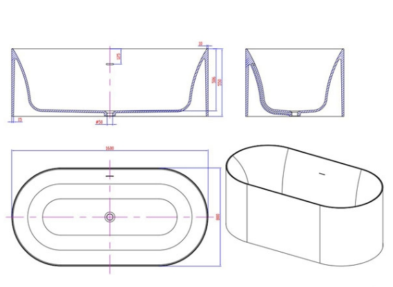 - Форма ванни овальна