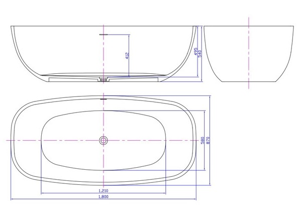 - Форма ванни овальна