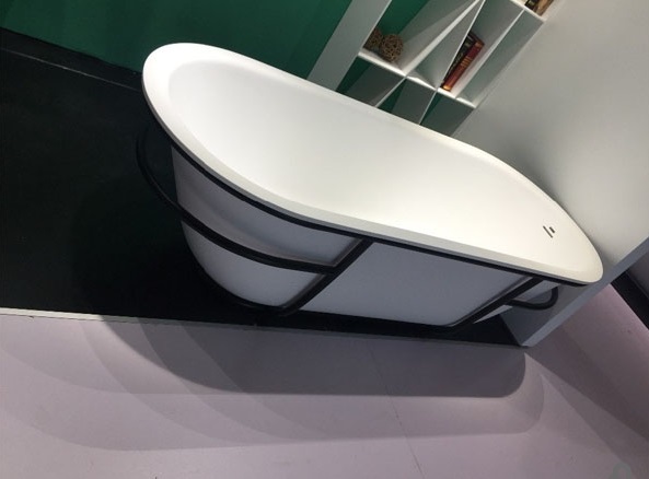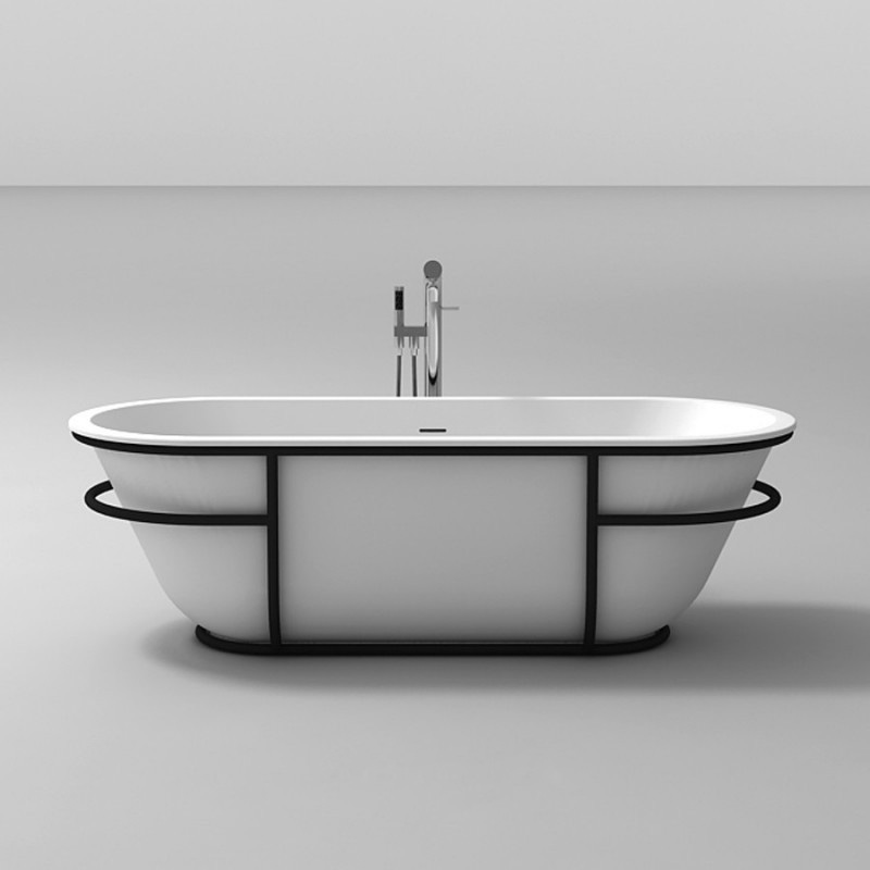 1) Ванна кам'яна окремостояча овальна на чорній металевій рамі Istone Lesley 177х72 см білий матовий