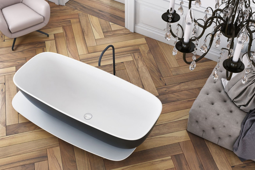 1) Ванна Kolpa San Milo-FS зі штучного каменю Kerrock 174x75 білий/чорний