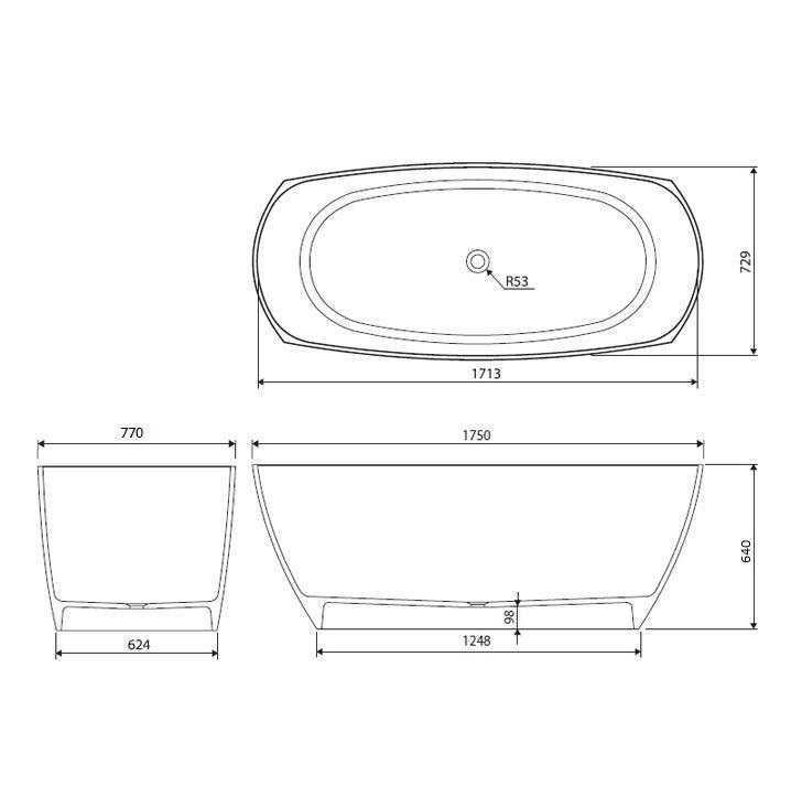 1) Ванна мармурова окремостояча Буль-Буль Albert 175х77х64 біла