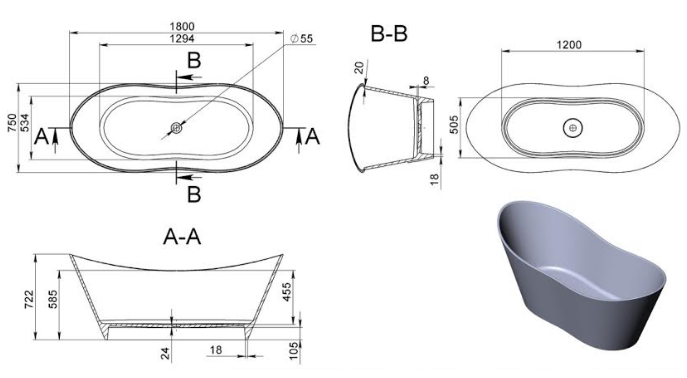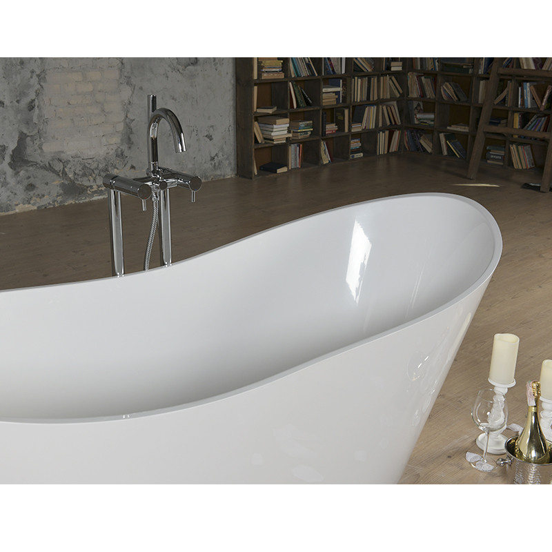 Ванна отдельностоящая Florida 1793х748х717 мм зроблена з високоякісного литого мармуру. Має товсте дно, що забезпечить довгі роки експлуатації. У комплекті ванна + слив + сифон (без переливу). Переваги: зручність, плавність форм, відсутність гострих кутів, величезне внутрішнє прсотранство ванни, навіть якщо ванну приймає двоє людей. Якісна ванна з штучного каменю гарантує довготривале збереження первісної форми і білизни. Окремо стоїть ванна з литого мармуру із зливним отвором в підлозі, без отвору під перелив і змішувач. Ванна може бути встановлена посеред кімнати або біля стіни і невимагає ніжок для установки.