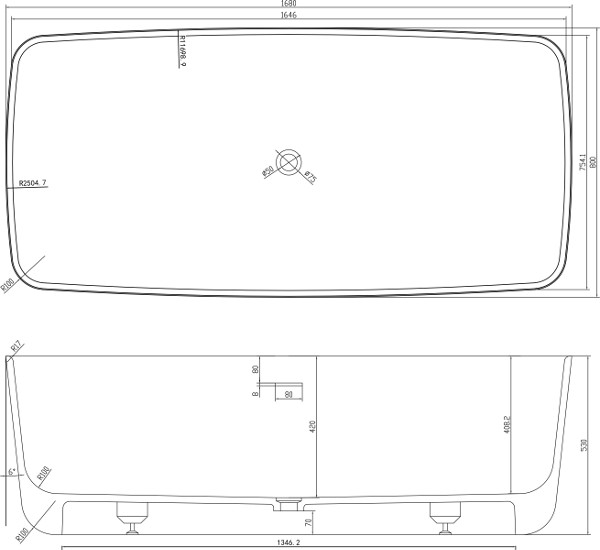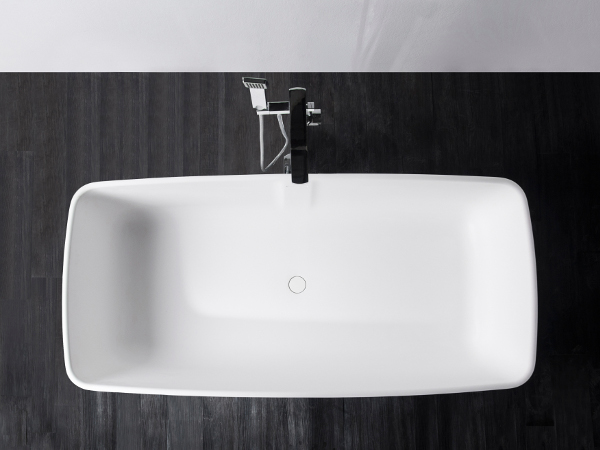 1) Ванна окремо стоїть кам'яна прямокутна Volle Solid surface 168х80 білий