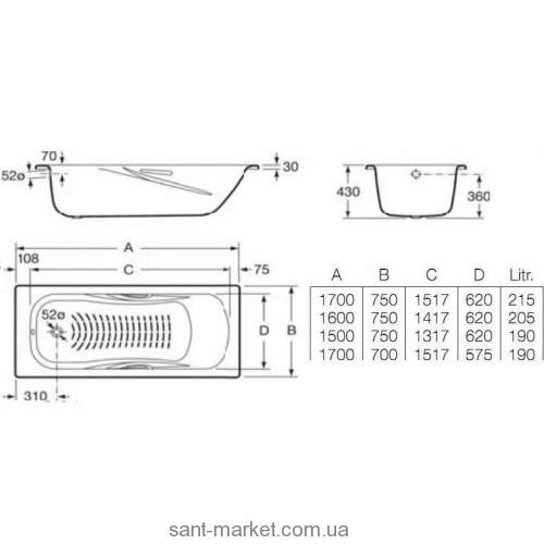 Roca Princess-N 150x75 - це сталева ванна від відомого іспанського виробника сантехніки Roca.
