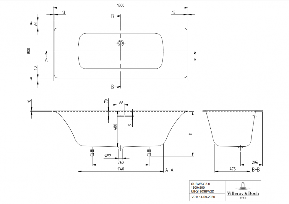 Ванна Villeroy & Boch Subway 3.0 180х80 UBQ180SBW2DV-01 - це: