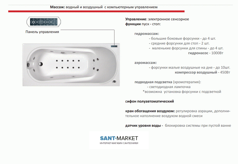 Ванна з гідро та аеромасажем акрилова Kolo Comfort 190х90х44 001104