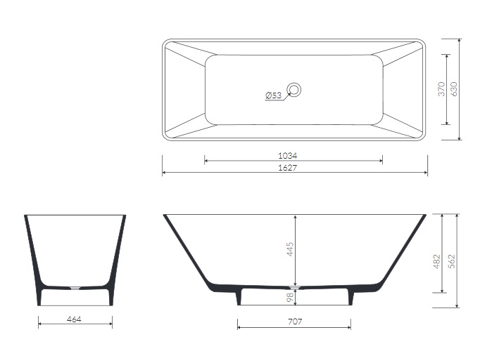1) Ванна з штучного каменю Marmorin Loren 162,7х63 см окремостояча білий