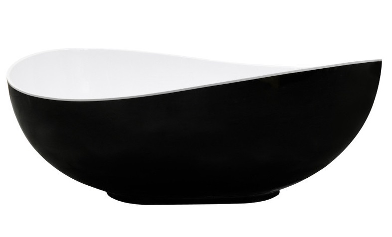 Ванна зі штучного каменю Besco Siya 172х100 см із сифоном клік-клак золото Mineral DuraBe чорний глянсовий/білий глянсовий #WMD-172-SWG