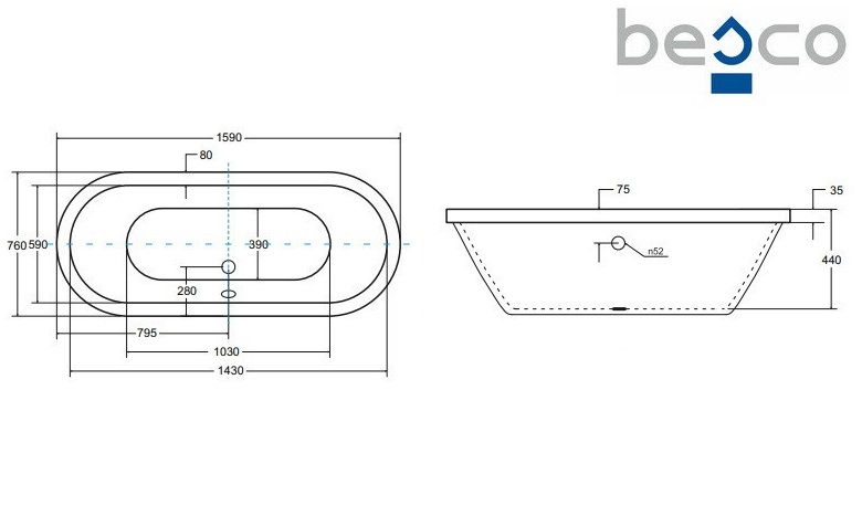 Ванна зі штучного каменю Besco Victoria 160х75 см із сифоном клік-клак хром санітарний композит білий глянсовий #WKV-160-WZ