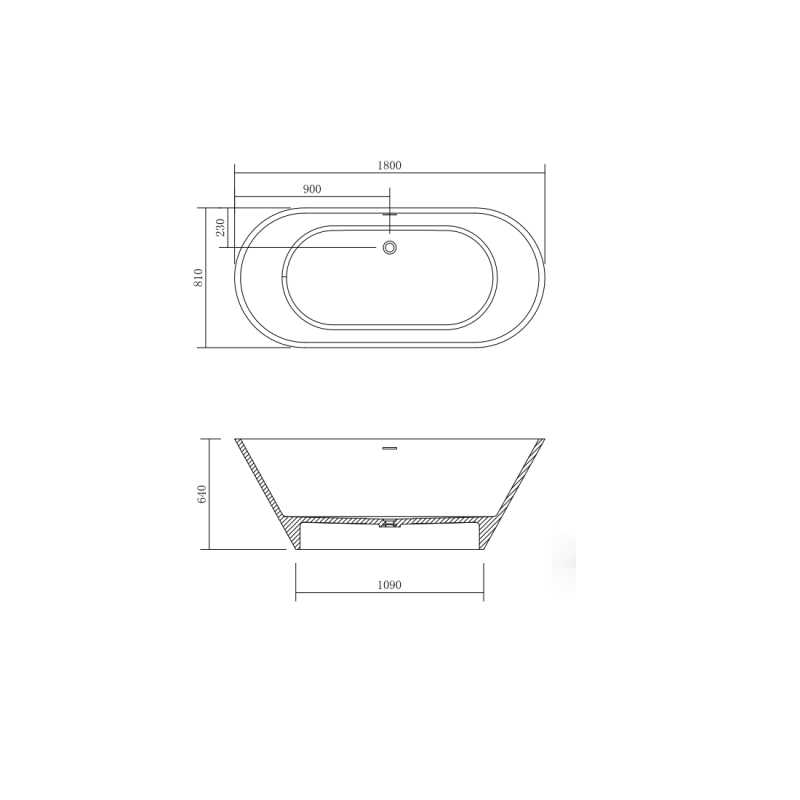 1) Ванна з штучного каменю Devit UP 180х81 см окремостояча білий матовий