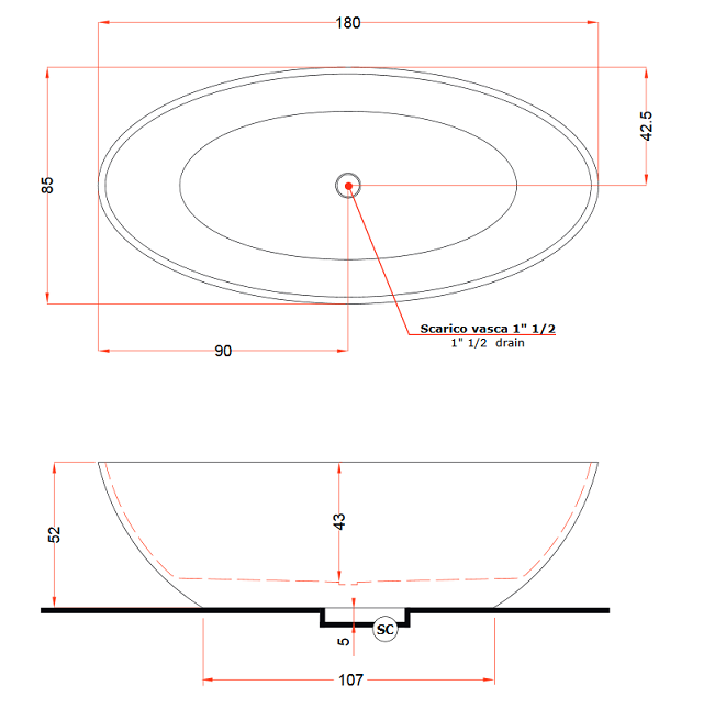 1) Ванна з штучного каменю Gruppo Treesse Carezza180х85 см білий глянсовий
