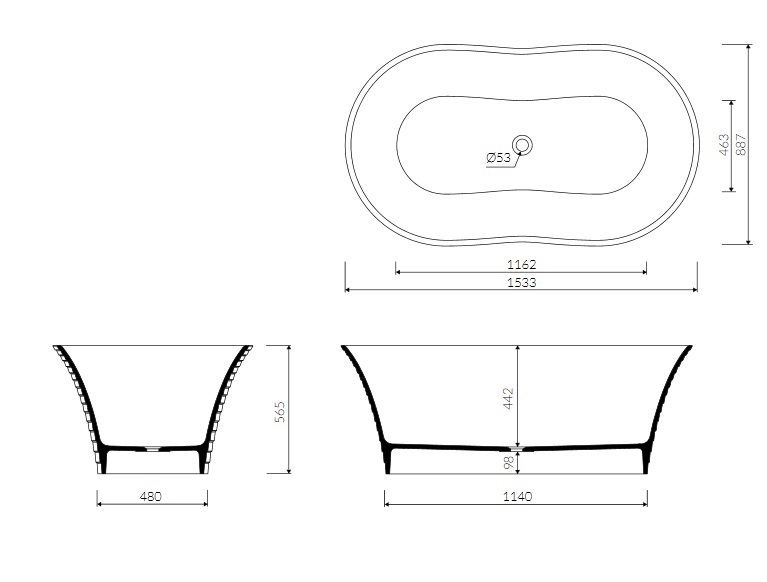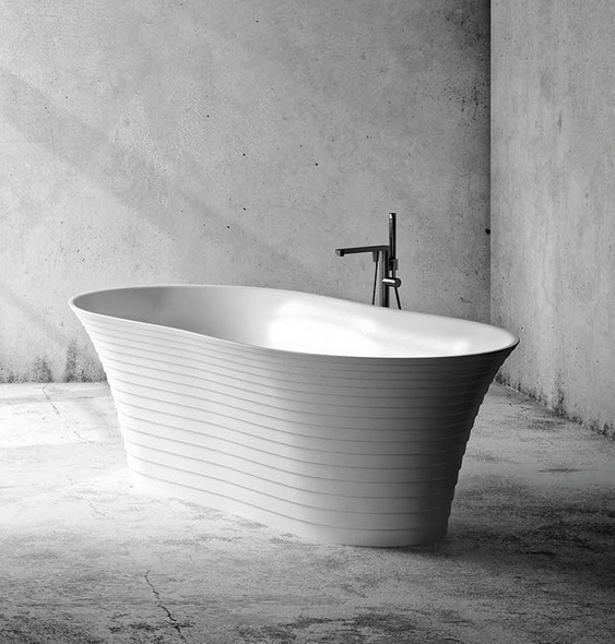 1) Ванна з штучного каменю Marmorin Cascada 153,3х88,7 см окремостояча білий