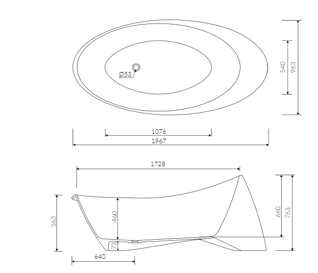 1) Ванна з штучного каменю Marmorin Goccia 196,7х96,3 см окремостояча білий