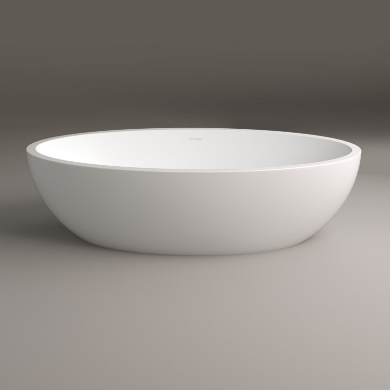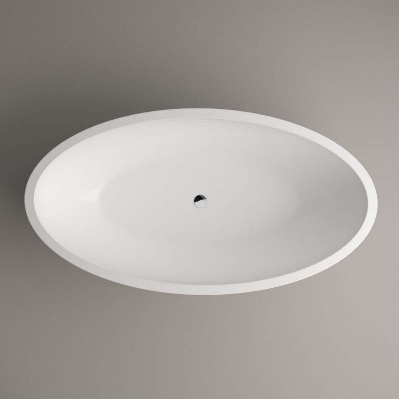 Ванна з штучного каменю PoolSpa Mood 170х90 см окремо стоїть з сифоном білий