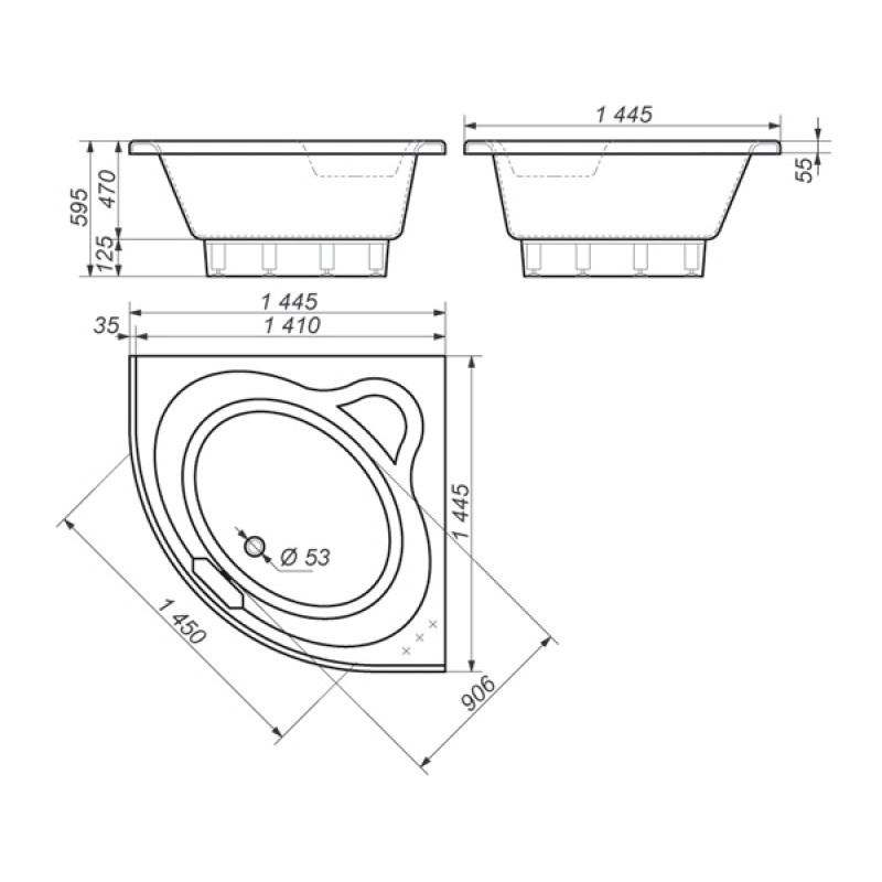 - Заокруглення кута ванни;