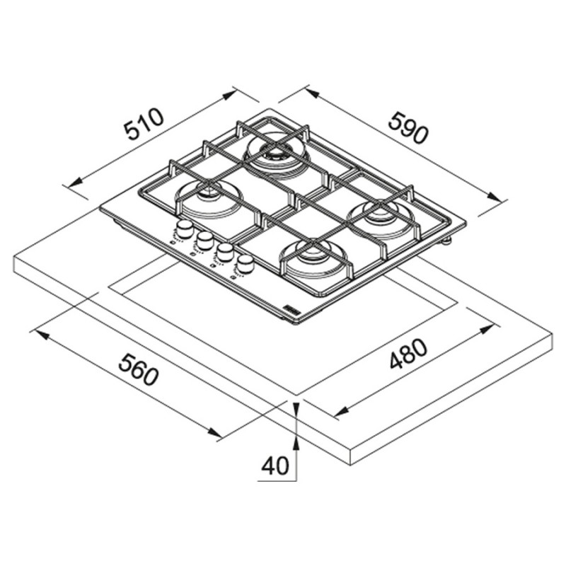 - Монтажний виріз: 560 х 480 х 40 мм