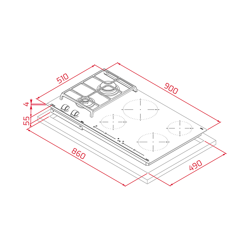 - Варкова панель HYBRID індукція та газ ExactFlame 90 см
