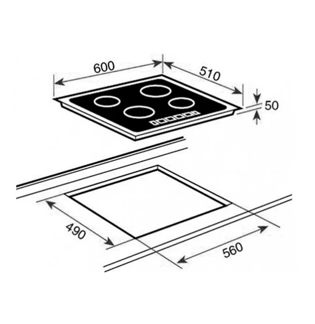 - Зовнішні розміри (ВхШ): 510х600 мм, виріз 560х490