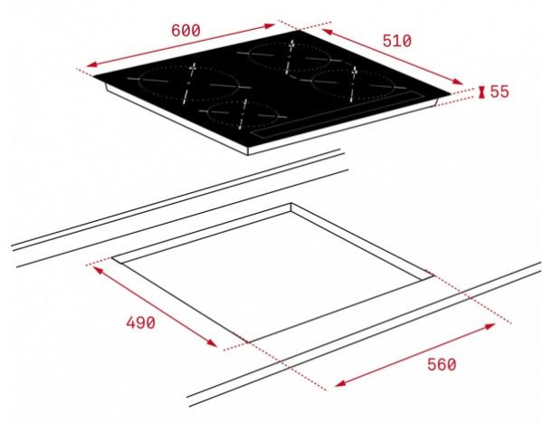 - 1 індукційна зона Ø 145 мм (1,4 / 1,8 кВт)