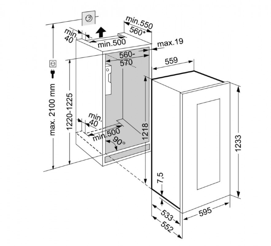 1) Вбудований винний шафа Liebherr EWTgb 2383 Vinidor нержавіюча сталь / скло білий