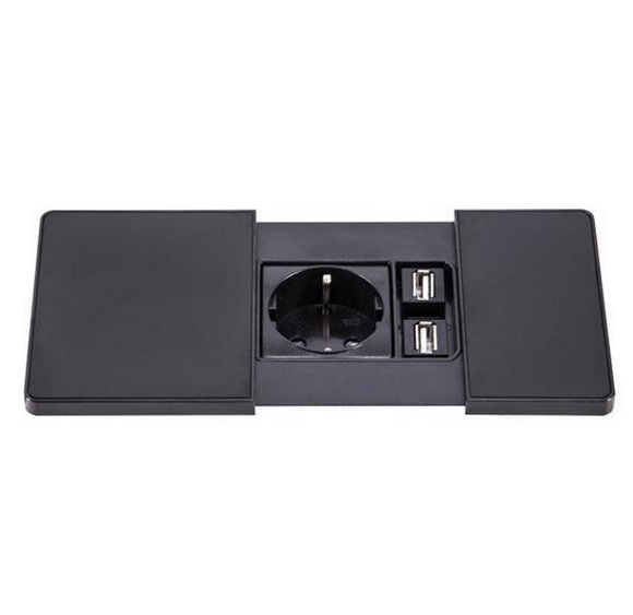 ковзаючий блок із розсувною кришкою, що містить як розетку, так і USB-порти , що робить його функціональним при оснащенні робочих місць та кухнях.