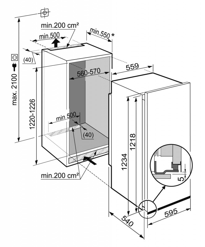 Габарити ніші Висота / Ширина / Глибина 122 - 122,6 / 56 - 57 / 55,0 см