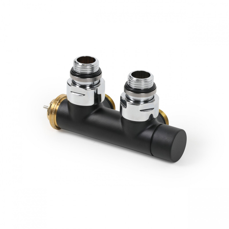 Вентиль Terma Cylinder інтегрований термостатичний кутовий з трубкою правий метал чорний мат TGZTCM002