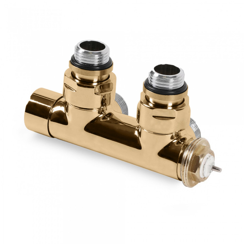 Вентиль Terma Cylinder інтегрований термостатичний кутовий із трубкою лівий метал золотий