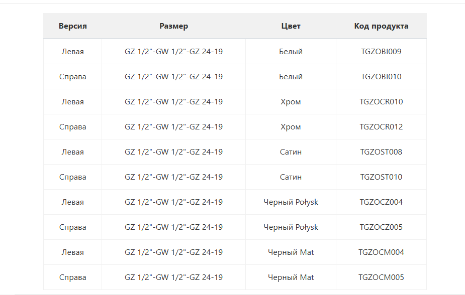 GGZ 1/2"-GW 1/2"-GZ 24-19