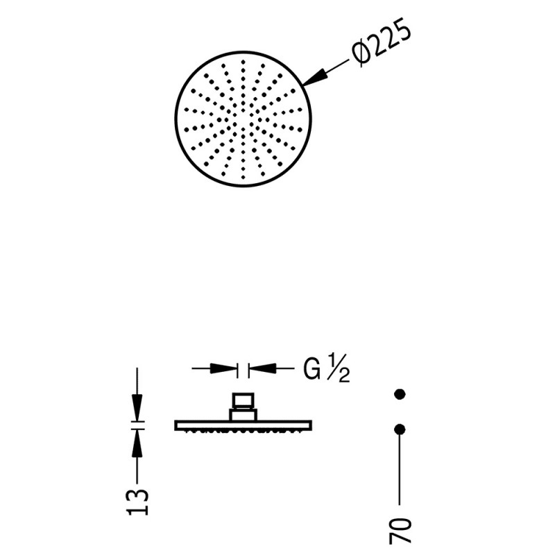 1) Верхній душ Tres Ø 225 мм з шарніром хром