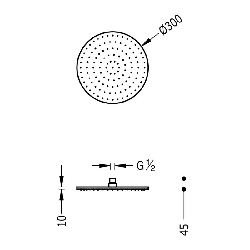 1) Верхній душ Tres Ø 300 мм з шарніром білий матовий