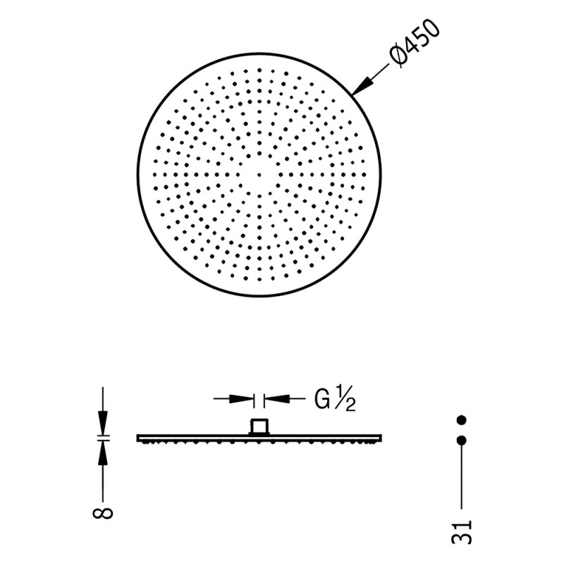 Верхній душ Tres Ø 450 мм з шарніром хром