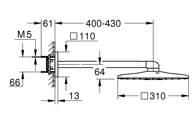 Верхній душ із кронштейном Grohe Rainshower SmartActive 310 Cube суперсталь