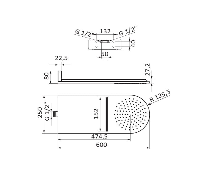 1) Верхній душ зі стіни GRB Hidromasaje Okina 2 режиму хром
