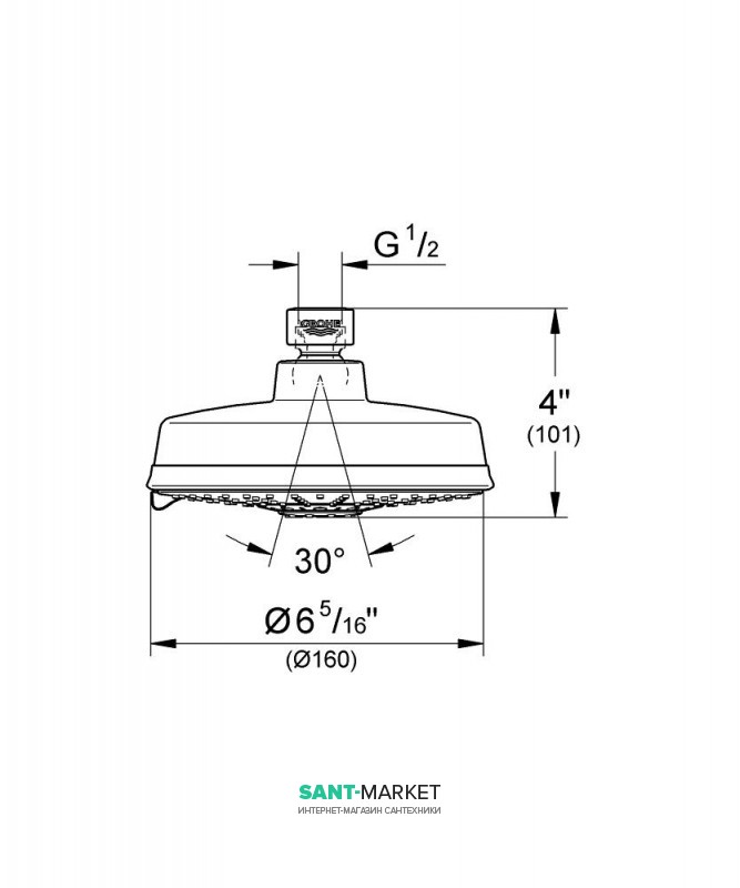 Верхній душ Grohe Rainshower Rustic 160 Shower хром 27130000