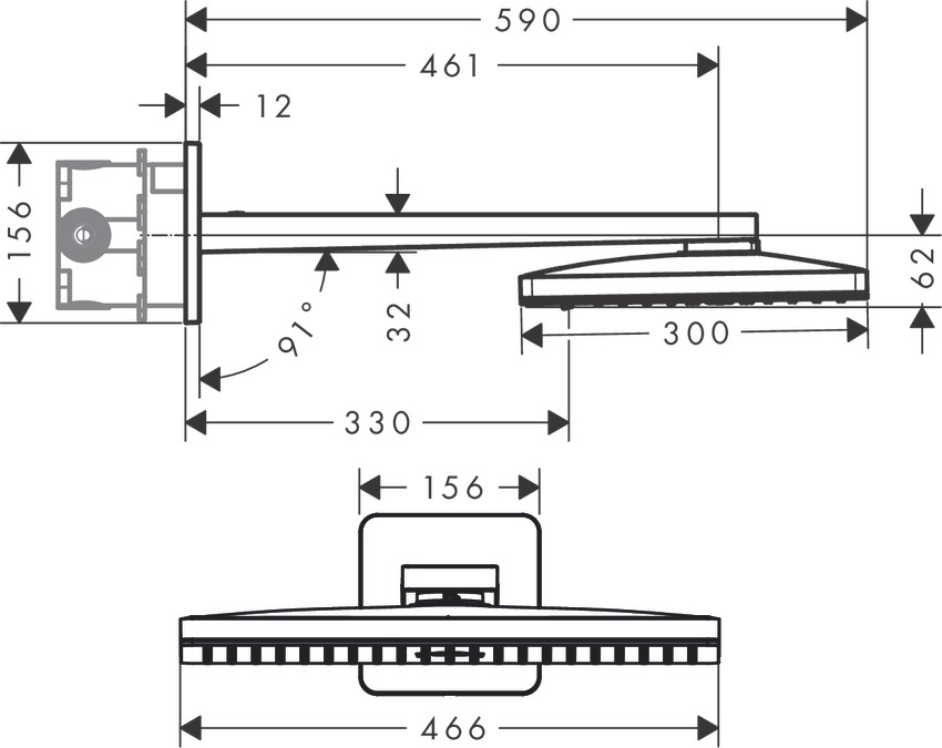 - розмір душового диска: 460 x 300 мм
