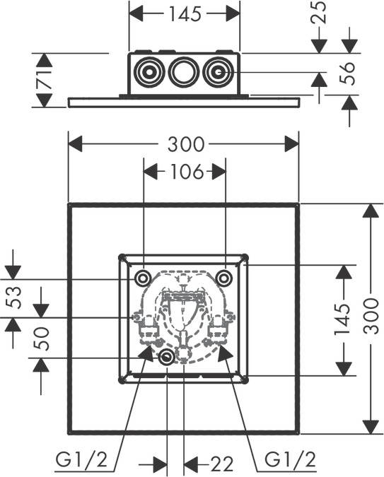1) Верхній душ Hansgrohe Axor ShowerSolutions 300х300 2jet стельовий монтаж хром