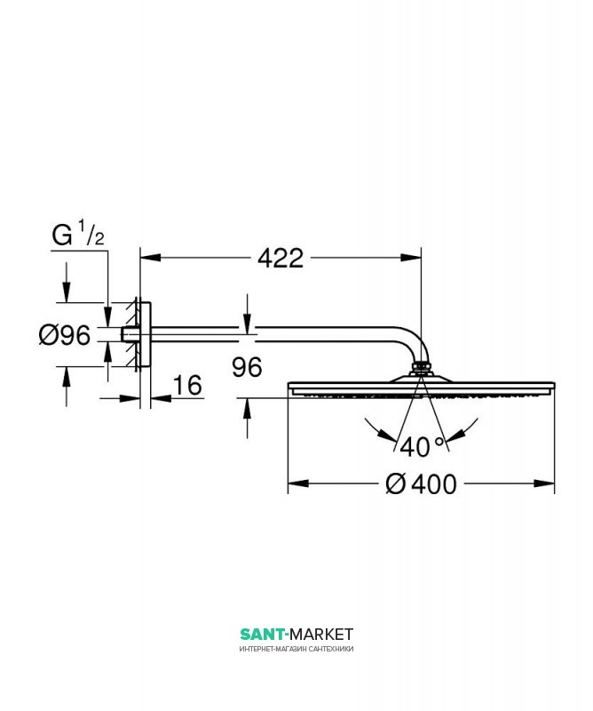 Rainshower® Cosmopolitan 400 Верхній душ і душовий кронштейн 422 мм включає в себе: верхній душ Rainshower® Cosmopolitan 400, метал (28778000) Душовий кронштейн Rainshower® 450 мм (26146000) системою SpeedClean проти вапняних відкладень DropStop відсутність крапель після вимкнення може використовуватись із проточним водонагрівачем.