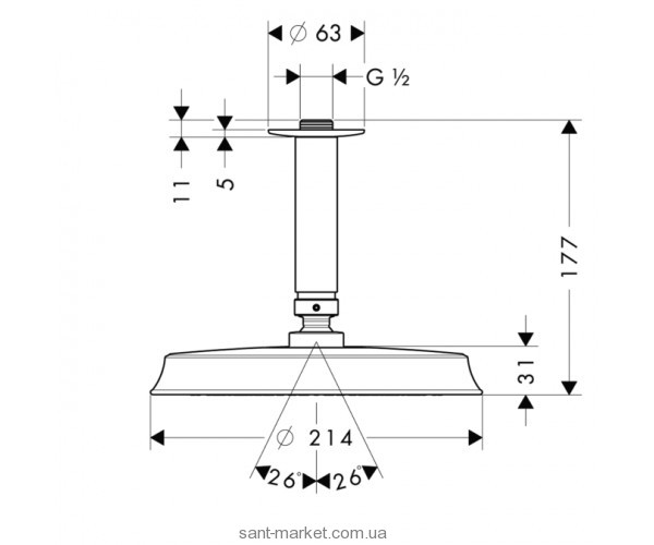 - Дивитися інші: Верхній душ зі стелі Hansgrohe