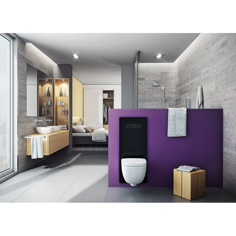 В туалетному терміналі TECElux робочі частини заховані за стіною. Тонка плоска лицьова скляна панель приховує за собою бачок, з'єднання для води і електрики і, в залежності від версії, систему видалення запаху або регулювання висоти санфаянса.