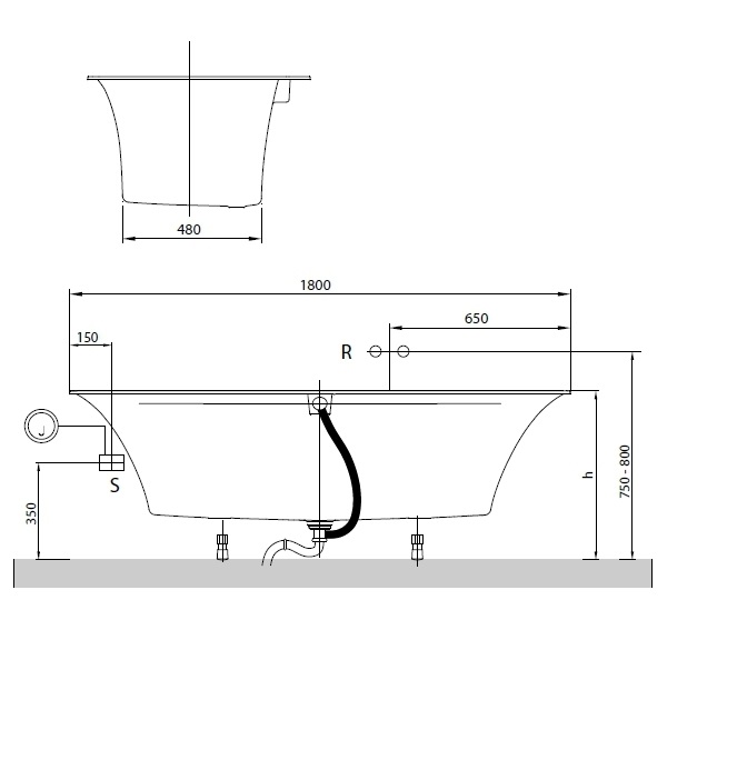 Комплект ніжок для ванни (самоклейних) входить у поставку, регулюються від 145 - 180 мм.