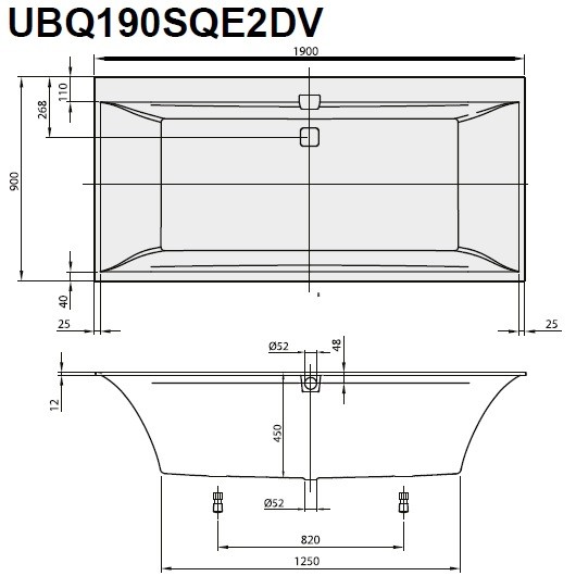 Villeroy & Boch Ванна 190х90 Squaro Edge UBQ190SQE2DV-01