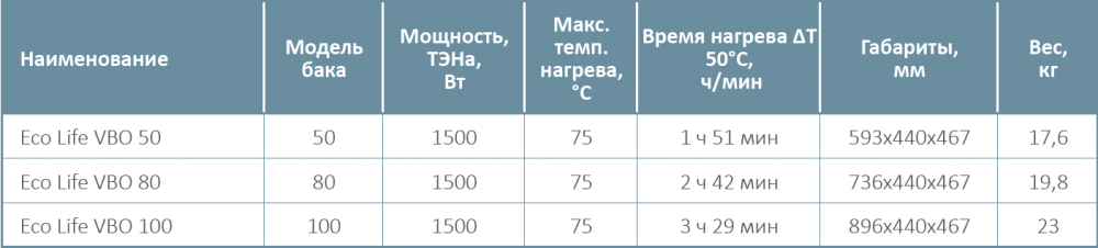Моделі Eco Life оснащені «мокрим» нагрівальним елементом 1,5 кВт.