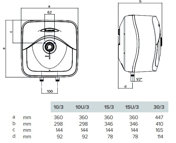 1) Водонагрівач накопичувальний Ariston ANDRIS RS 10/3
